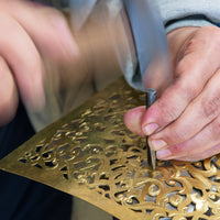 Ibrahim specialises in brass and copper forging. He has a strong passion for brass and copper work. He is innovative and creative in the way in which he designs new objects. In the era of developed (laser) machines, Ibrahim refuses to opt for facilities at the expense of the handmade charm. He hosts in his company, several trainees and apprentices every year and collaborates with his peers for big projects.
